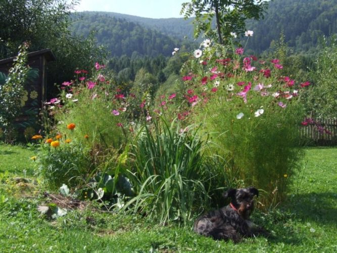 Dom otacza 2 hektarowa działka pełna ziół i kwiatów z miejscem do grillowania i bezpiecznym parkingiem.