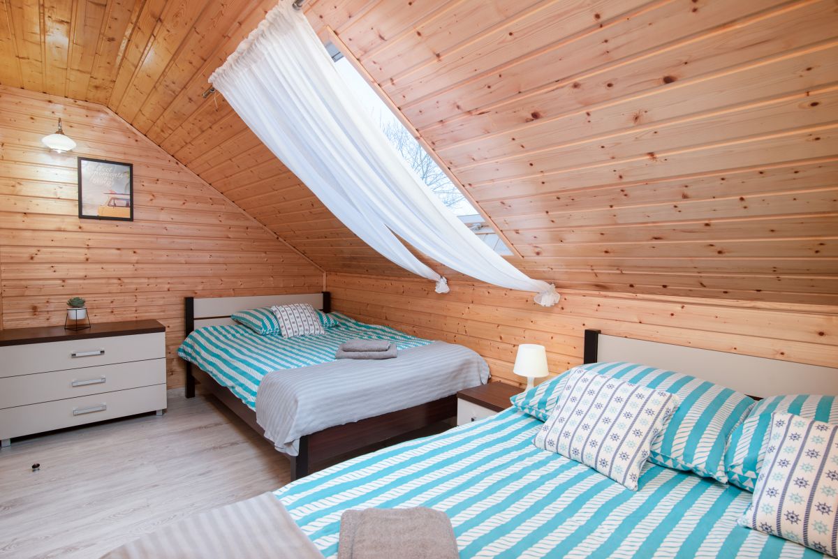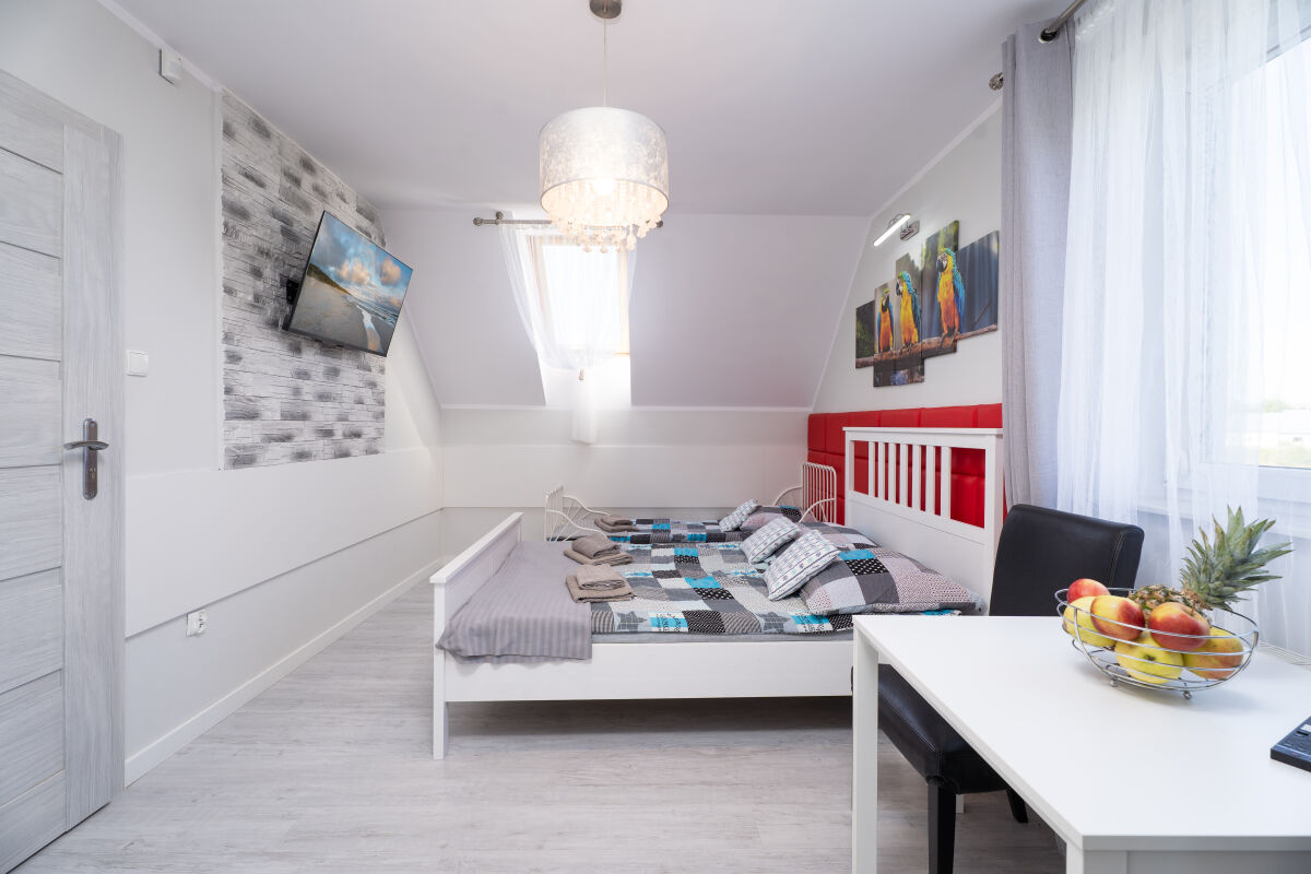 - Dwie sypialnie w każdej (1 łoże małżeńskie oraz 1 rozkładana sofa, stolik nocny, komoda, pościel, lampka nocna);