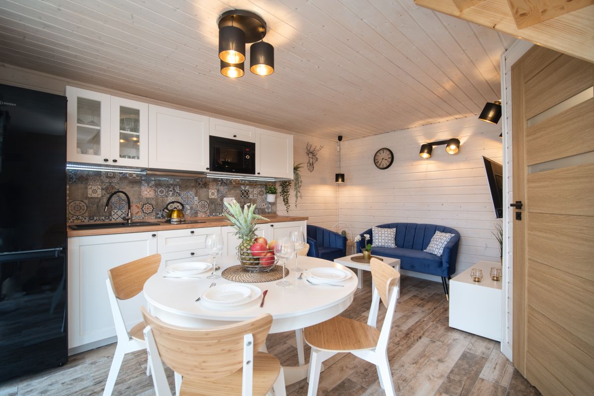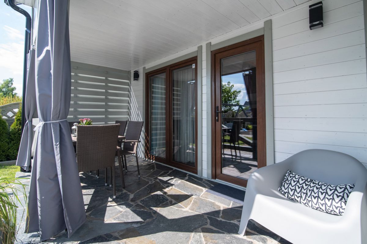 Komfortowe, całorocznie ogrzewane, klimatyzowane oraz nowocześnie wyposażone domki o bardzo wysokim standardzie o powierzchni ok 52 m2 przeznaczone dla max 6 osób stanowią idealne miejsce na rodzinny wypoczynek. Domek posiada niezależne wejście, zadaszony taras o powierzchni ok 10 m2 wraz z meblami wypoczynkowymi gdzie można spożywać posiłki, a w letnie wieczory usiąść z lampką wina.