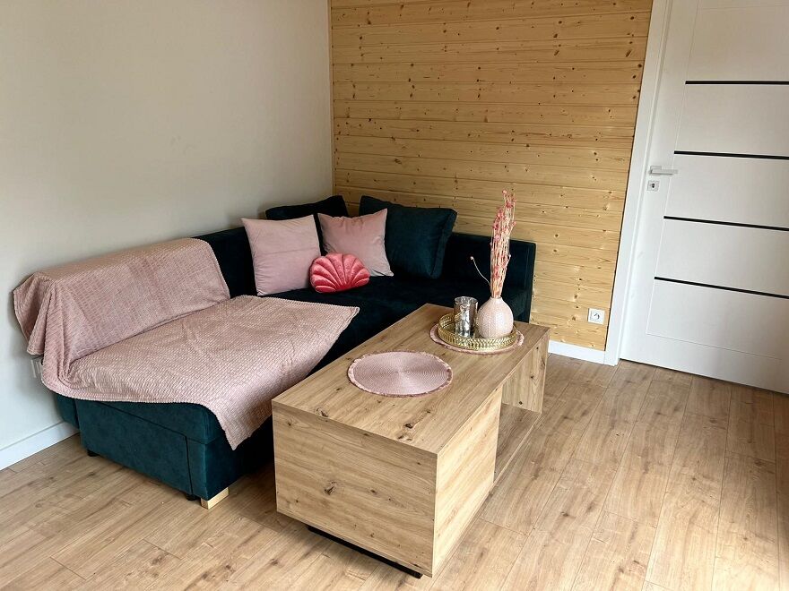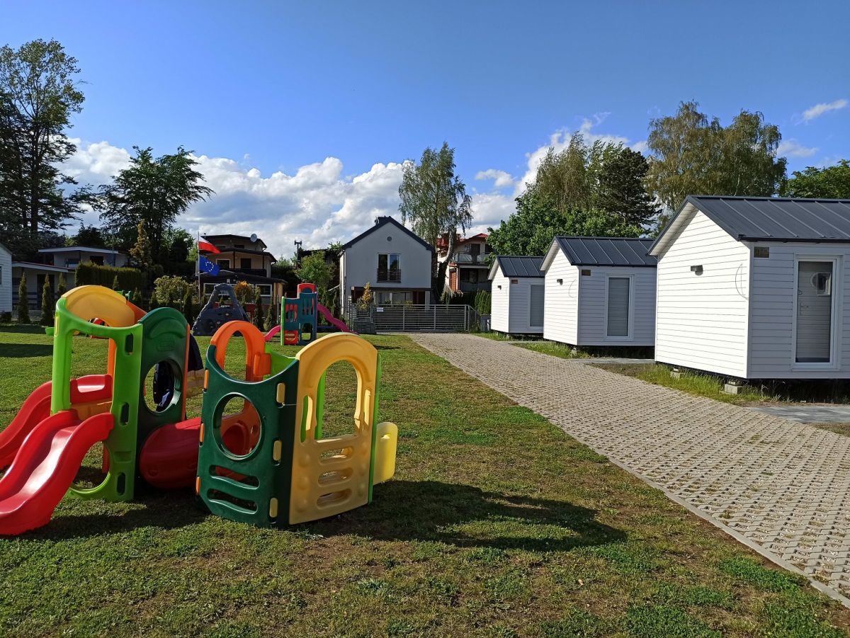 NOWE DOMKI PARTEROWE - 4 osobowe: dwie zamykane sypialnie (po 2 łóżka pojedyncze z możliwością zestawienia w jedno większe). W salonie znajduje się rozkładana sofa (dostawka). W sumie 3 pomieszczenia wraz z aneksem kuchennym, w łazience kabina prysznicowa. Taras ze stołem oraz ławkami, grill. Plac zabaw dla dzieci, ścianka wspinaczkowa, bramki. Parking bezpłatny dla naszych Gości.